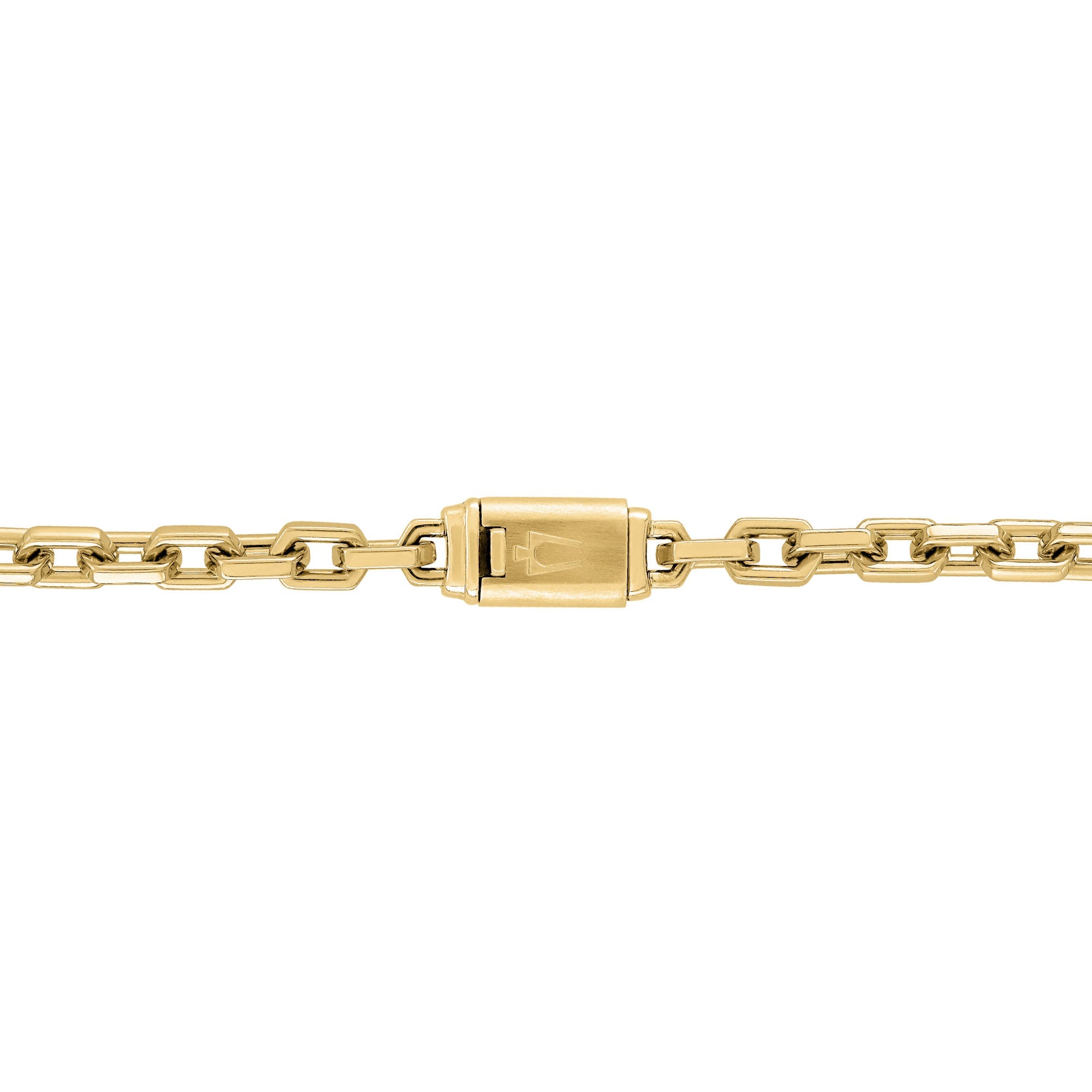 Make a statement of refined structure and subtle shine with the Bulova BVC1077-GSTNA24 — a distinguished 24-inch gold-tone necklace from Bulova’s Icon collection, built to elevate any look with elegant geometry and timeless craftsmanship. Each 5 mm link is shaped into an elongated hexagon, symbolizing harmony, balance, and architectural precision. The polished gold-tone stainless-steel chain catches the light beautifully, presenting a continuous line of gleam around the neck. At its heart lies a matte-finish box clasp, etched with Bulova’s iconic tuning-fork emblem — a mark of heritage and quality that secures your necklace with confidence. Worn solo, it commands understated elegance; layered with other chains or pendants, it becomes a powerful foundation for a curated, luxurious style.