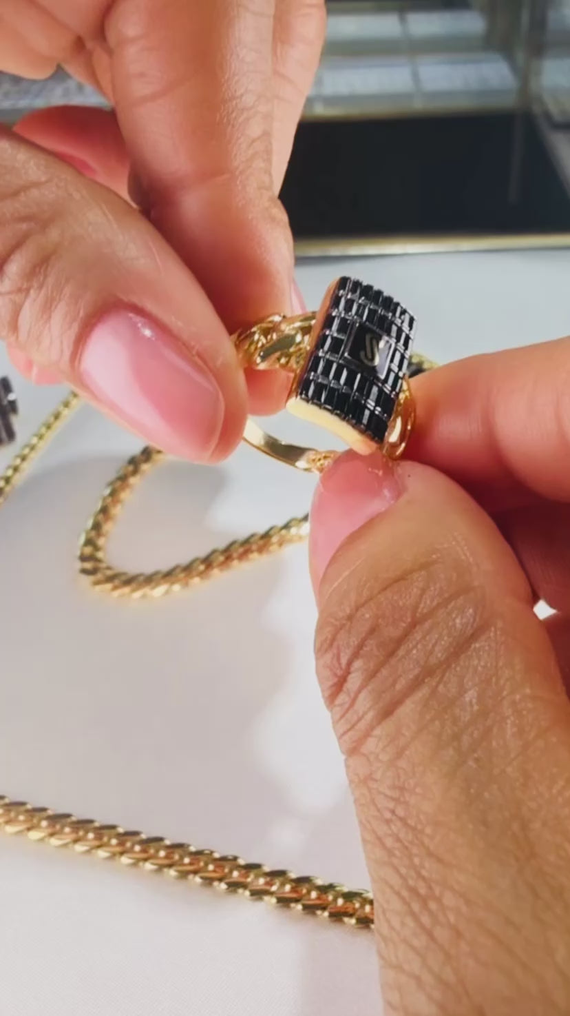 14K Monaco RING CLASSIC -BLACK Baguette Link