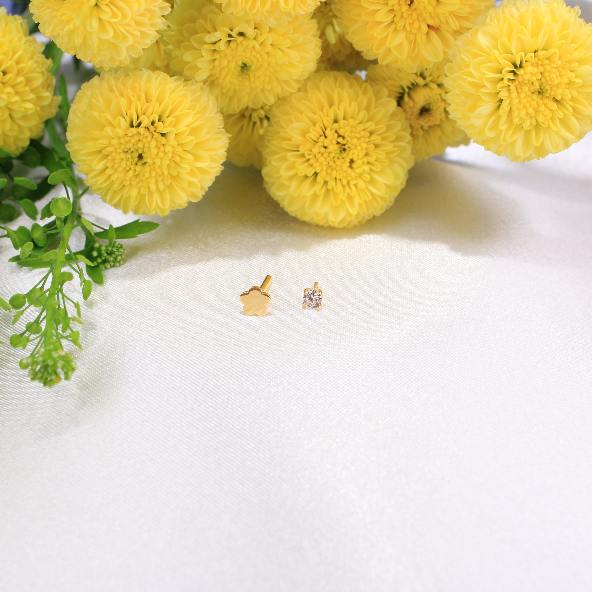 solid gold stud earring with a comfortable flat back for 24/7 wear.