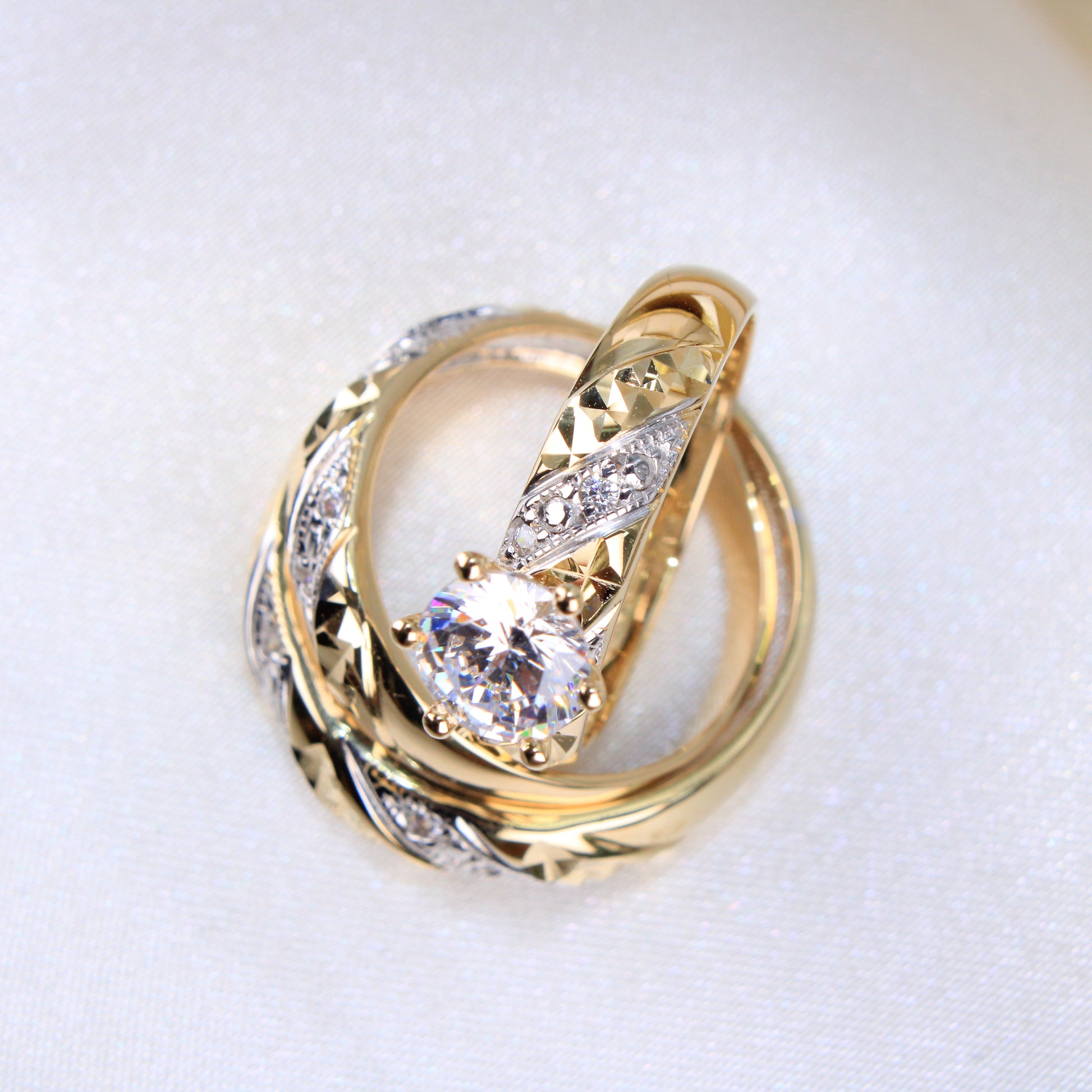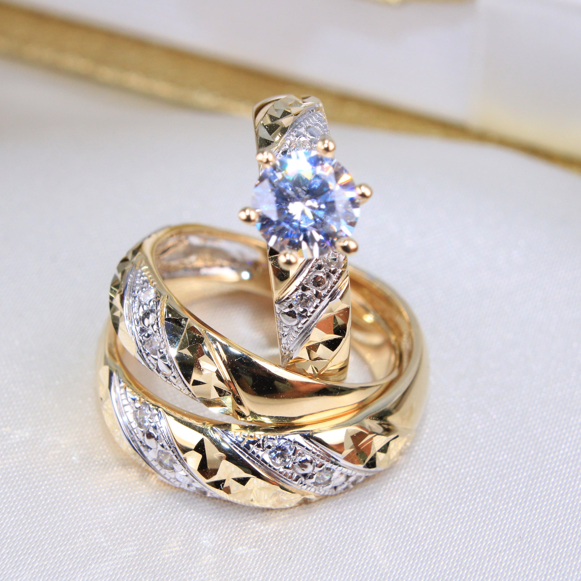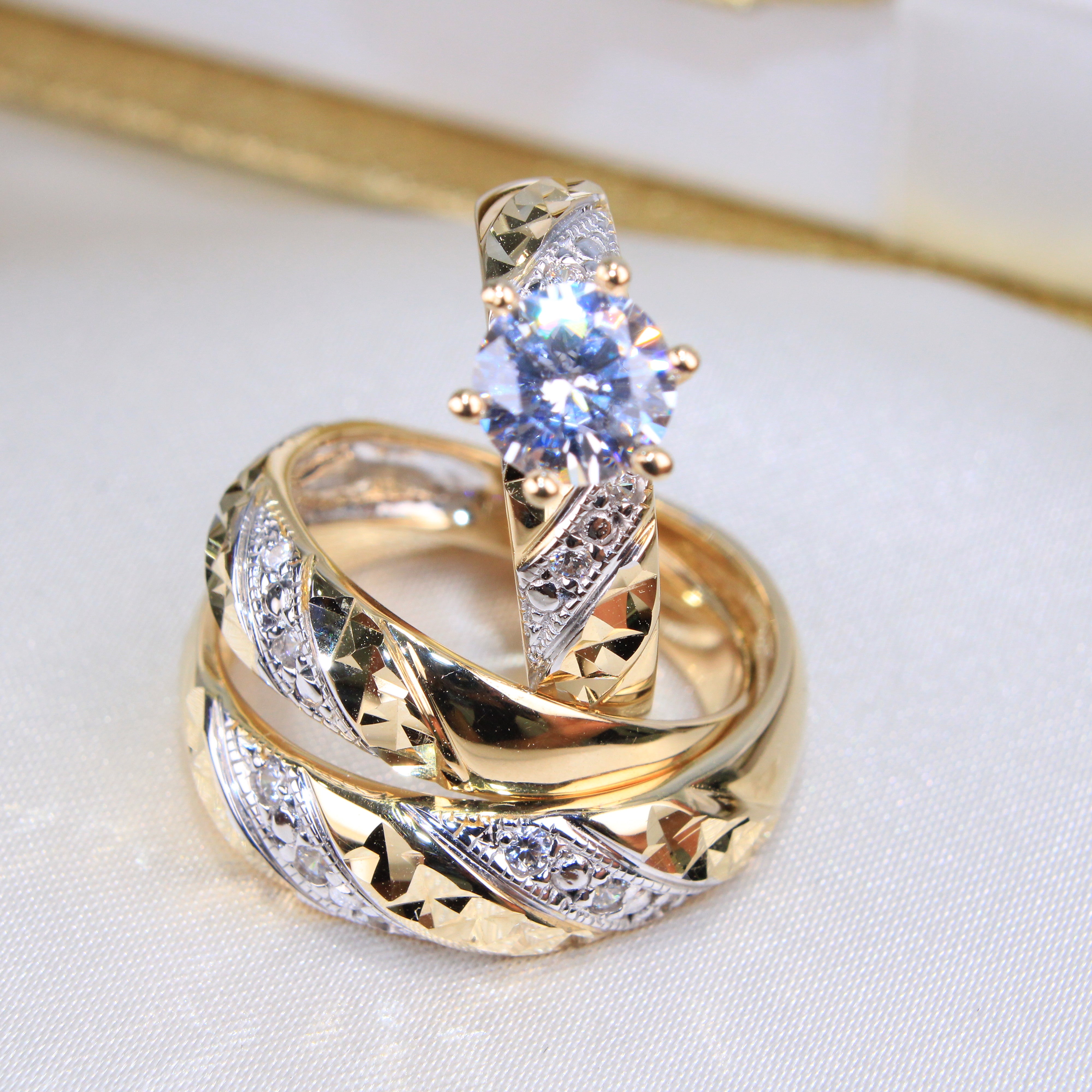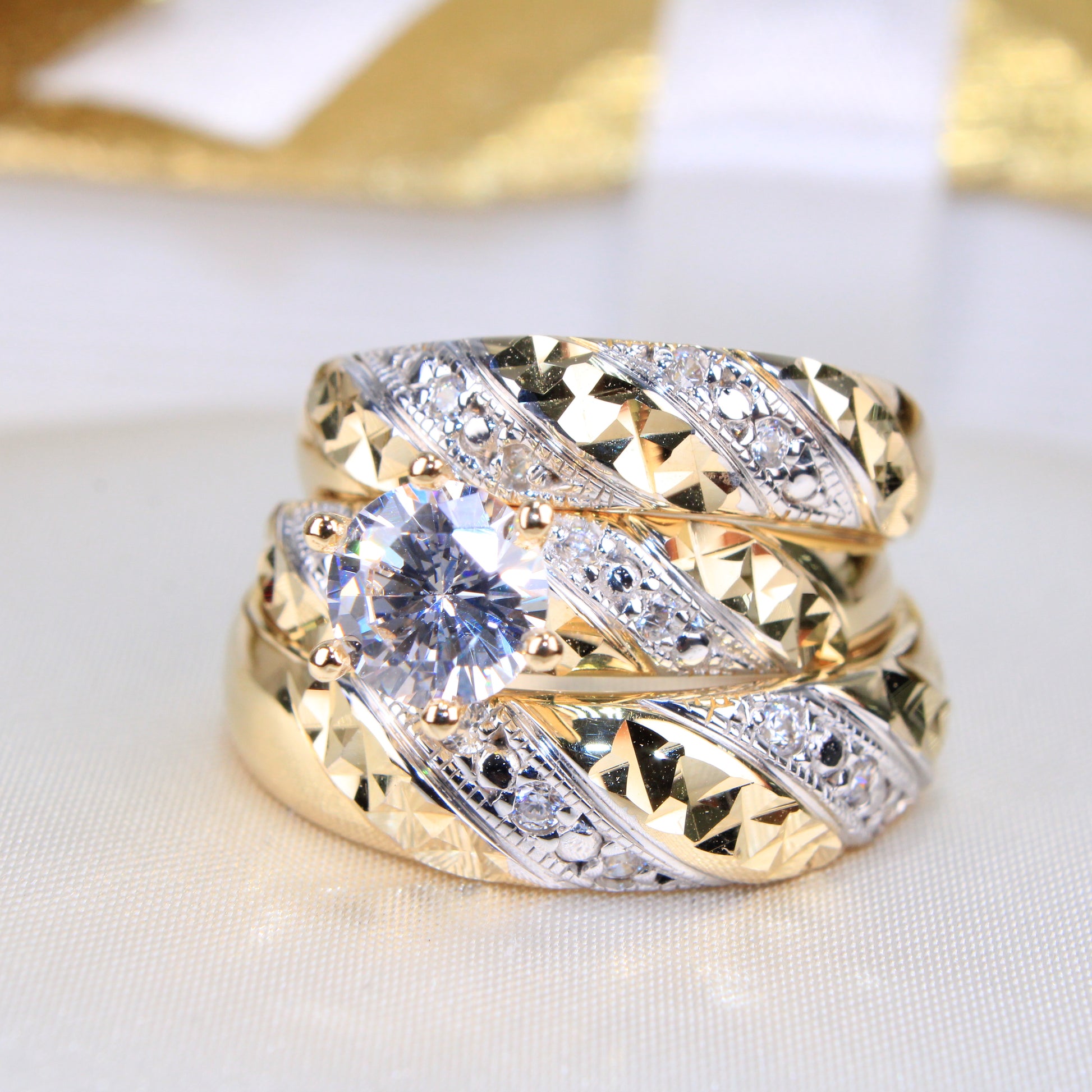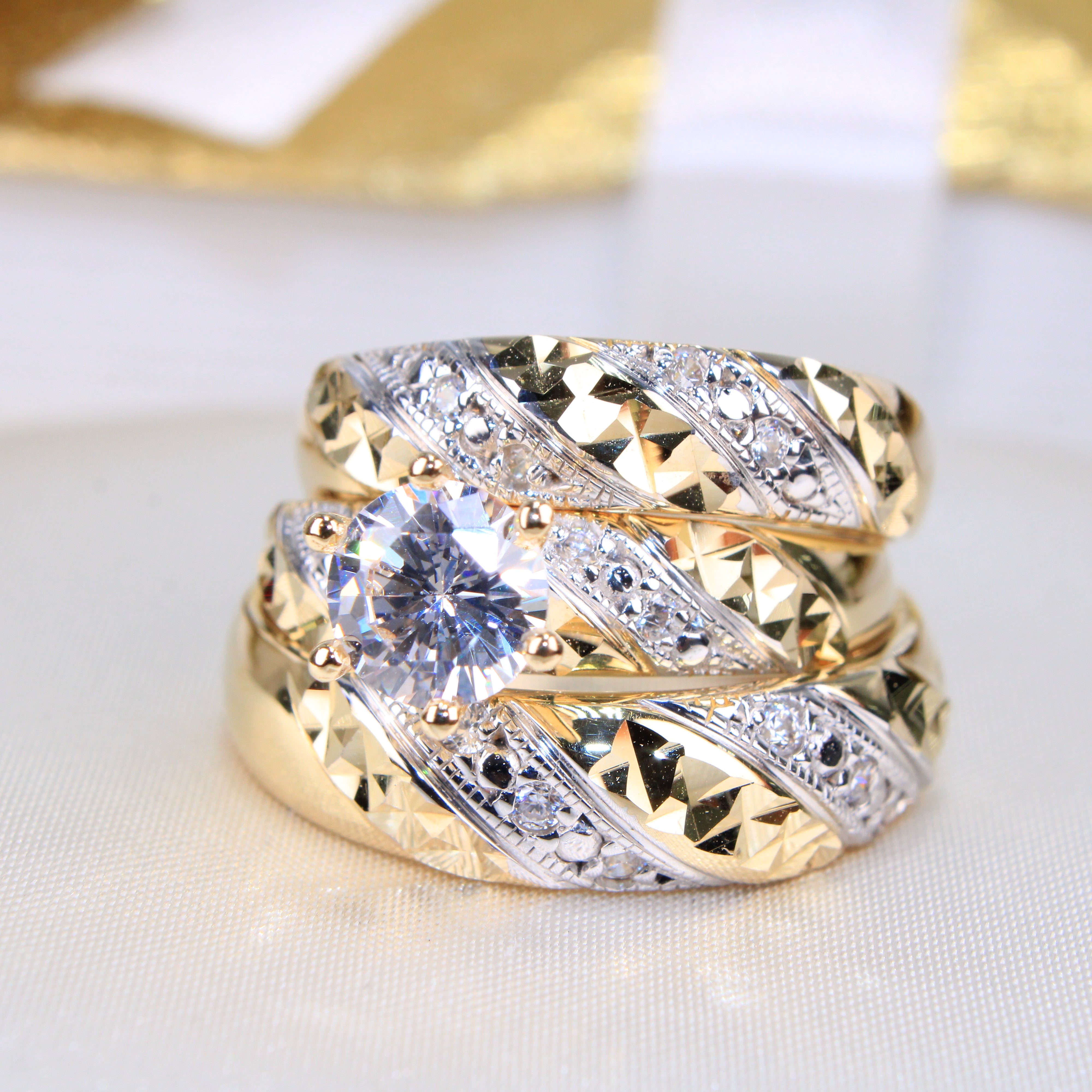 14K 2 Tone Gold Rings Wedding Trio set